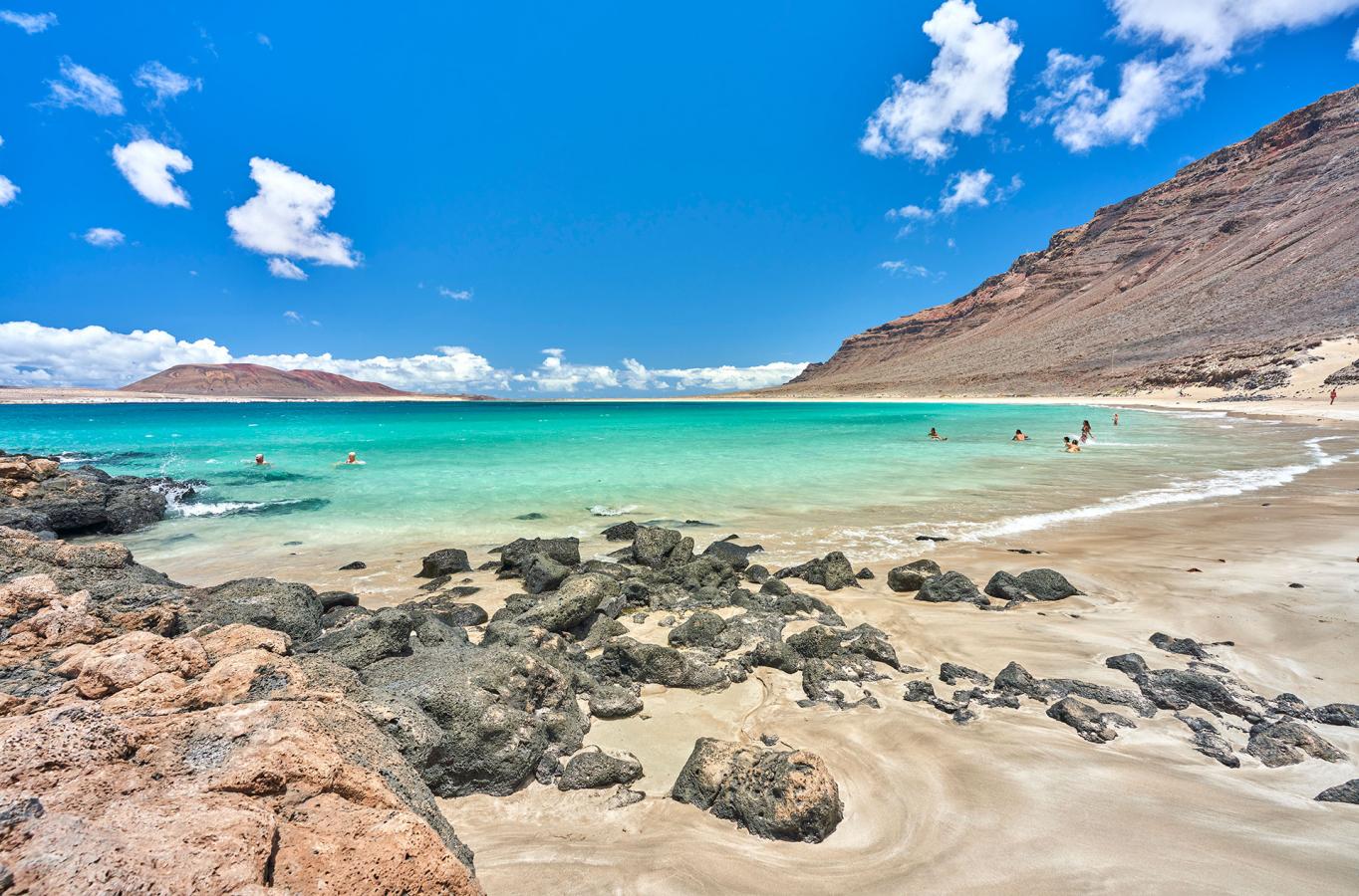Anstrengung wert ist, um zumindest einmal im Leben gesehen und fotografiert zu werden. Hier existiert die Zivilisation nicht. Eine absolute Ruhe, die nur vom Rauschen der Wellen unterbrochen wird. Kristallklares Wasser, goldfarbener Sand, der sich mit Vulkangestein abwechselt, und die eine oder andere einheimische Pflanze ... Ein einzigartiges und äußerst exotisches Szenario. Abgerundet wird das Ganze vom majestätischen Risco de Famara, der den Strand zu seinen Füßen bewacht. Ein tolles Postkartenfoto, das für immer im Instagram-Profil, oder besser noch, in unserer Erinnerung festgehalten wird.